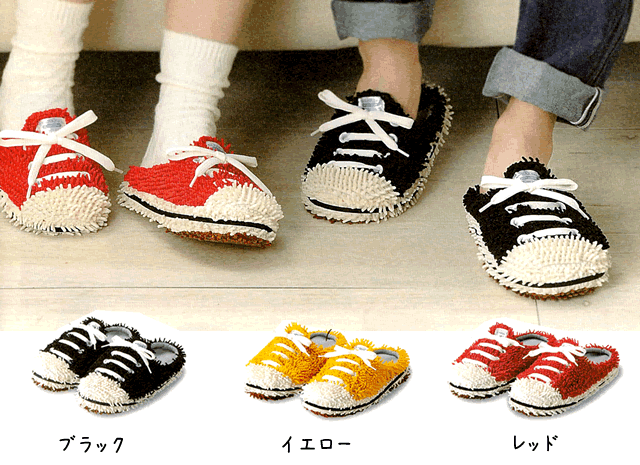 ★便利グッズ★手洗い可!マイクロファイバーモップスリッパスニーカーM ブラック/イエロー(オレンジ)/レッド23cm〜26cm 黒赤黄色 モップスリッパ雑貨通販【RCP】